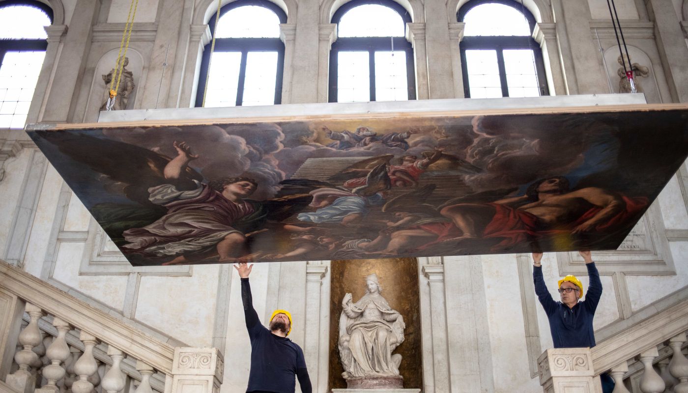 Il dipinto raffigura il sogno biblico di Giacobbe a Bethel, simbolo della promessa divina, rappresentata attraverso la celebre scala popolata di angeli. Di grandi dimensioni – quasi quattro metri e mezzo per oltre due metri – l’opera è stata ricollocata nella sua posizione originaria, all’interno della cornice lignea dipinta. L’intervento si inserisce in un più ampio impegno di San Marco Group nella tutela del patrimonio artistico veneziano, rafforzando il legame tra impresa, cultura e territorio.